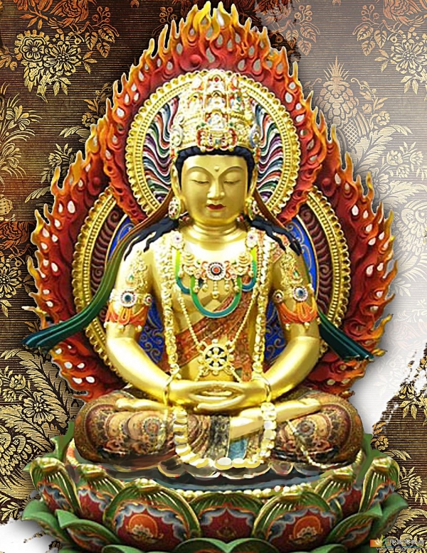 胎藏界大日如来也是跏趺坐,#菩萨#像,但头戴魏髻,身缠轻妙之衣,手结法界定印,即左手在下,右手在上,两拇指相抵,通身金色(或白色)。